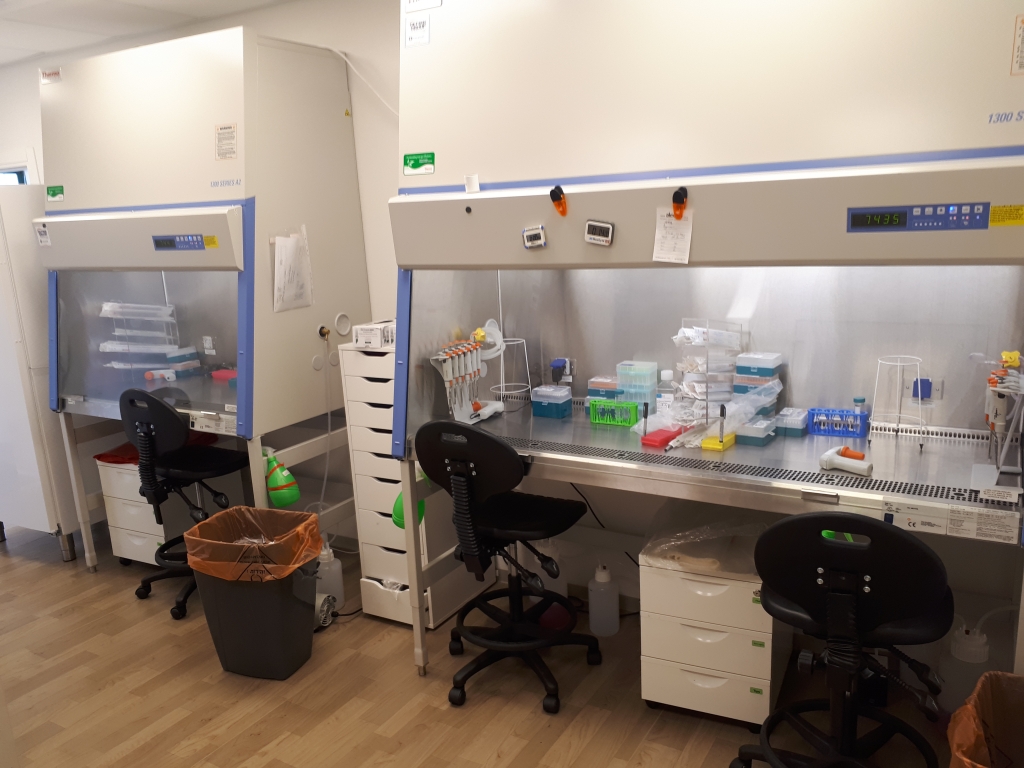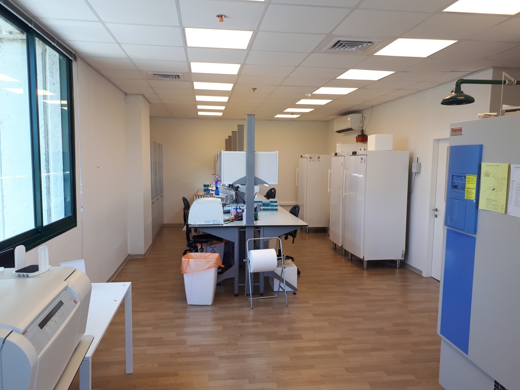 משרד חדש, עיצוב אדירכלי, המחולק למעבדה ביולוגית, מוארת ומאובזרת, בציוד חדש ותקין הכולל חדר תרביות תאים, מכשיר FACS, מכשור לביולוגיה מולקולרית ועוד.